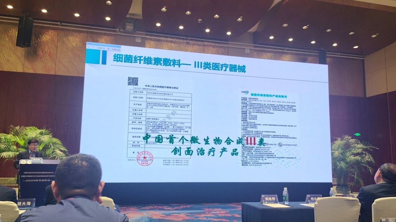 哈爾濱市第五醫(yī)院的李宗瑜教授在分享專家報(bào)告——“生物材料(藥 物)與創(chuàng)面的臨床修復(fù)”時(shí),對匯涵科技最新產(chǎn)品——匯涵皮纖生?細(xì)菌纖維素敷料表示好評與認(rèn)可,并向在場的專家學(xué)者、醫(yī)護(hù)人員等介紹其結(jié)構(gòu)性能、適用范圍與臨床應(yīng)用。