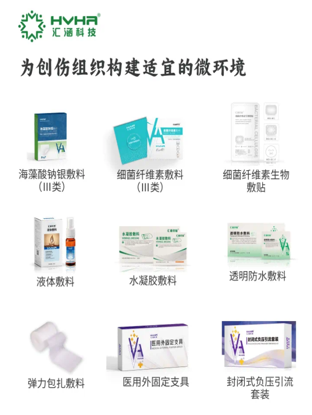 本次展會(huì)上,匯涵科技隆重推出了兩款全新的Ⅲ類醫(yī)療器械產(chǎn)品——匯涵皮纖生?細(xì)菌纖維素敷料和匯涵優(yōu)貼?海藻酸鈉銀敷料,成為展會(huì)的一大亮點(diǎn)。匯涵皮纖生?細(xì)菌纖維素敷料是凝膠狀生物敷料金標(biāo)準(zhǔn),適用于深Ⅱ度燒傷創(chuàng)面的覆蓋及淺表性創(chuàng)面、燒傷創(chuàng)面、手術(shù)后縫合創(chuàng)面、慢性創(chuàng)面等創(chuàng)面的滲液吸收;匯涵優(yōu)貼?海藻酸鈉銀敷料則是外用抗生素敷貼金標(biāo)準(zhǔn),采用全新一代專利技術(shù),能夠高效吸收傷口滲液,實(shí)現(xiàn)物理抑菌抗感染,可用于覆蓋存在感染風(fēng)險(xiǎn)的傷口,如褥瘡性潰瘍、糖尿病潰瘍、Ⅱ度燒燙傷等。這兩款新產(chǎn)品的推出,不僅豐富了匯涵科技的產(chǎn)品線,更是公司在生物外科創(chuàng)傷修復(fù)領(lǐng)域技術(shù)創(chuàng)新的重要體現(xiàn),為臨床治療提供了更加安全、高效的解決方案,受到了現(xiàn)場(chǎng)專業(yè)人士的高度關(guān)注與認(rèn)可。